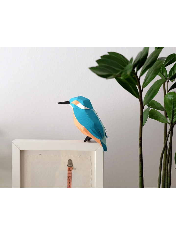 O kit contém 5 papéis de arte em polpa tingida, com 50% algodão e resistentes à luz, uma folha de ensino com as principais características do martim-pescador e instruções de montagem. As peças são pré-cortadas e marcadas para facilitar a dobragem e montagem. Todos esses materiais são apresentados em uma pasta robusta e atraente. Cola artesanal branca é necessária para colar os pedaços da figura juntos."